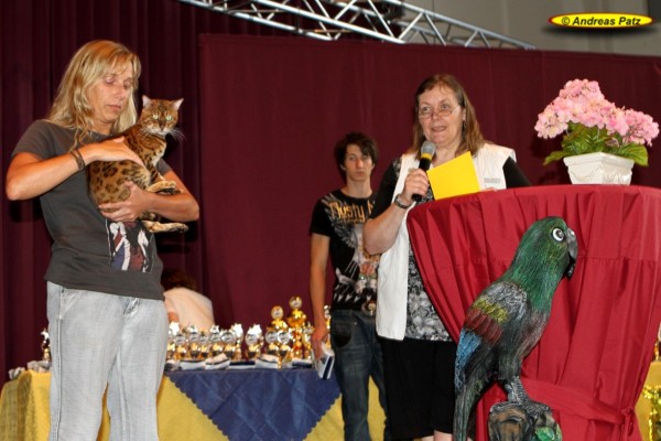 Al Jannas Wild Like Me (Wilma) ist gerade neun Monate alt geworden, d.h. es war ihre erste Ausstellung in der Erwachsenen-Klasse. Wilma war damit die jüngste Katze im Erwachsenen-Starterfeld und hat ihren Titel gegen viele ausgewachsene Kater gewonnen !!! Das zeigt, dass auch die Richter sie für eine absolute Ausnahmekatze halten !