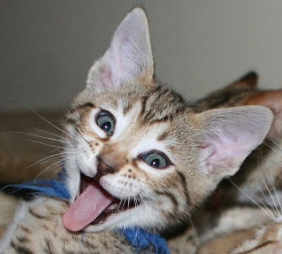 Am Anfang unserer Zucht haben wir die Meinung vertreten, dass ein Züchter, wenn er nur einen Wurf hat, sich besser um die Bengalkitten kümmern kann. Das ist falsch! Durch unsere jahrelange Erfahrung haben wir gelernt, dass die Kitten gegenüber Mensch und Tier wesentlich besser sozialisiert werden, wenn mehrere Würfe gemeinsam da sind. Wir versuchen daher immer zwei oder drei Würfe zusammen zu bekommen. Das ist natürlich nur machbar, wenn die Natur mitspielt. Wenn Sie uns besuchen, werden Sie sehen, wie einmalig anhänglich unsere Bengalen sind - sowohl Zuchtkatzen als auch Bengalkitten.