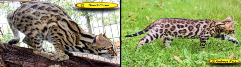 Es war früher evtl. so, dass mit Bengalkatze die Wildkatze ALC (Bild links) gemeint war. Heute spricht man auch unter Fachleuten von der Bengakatze, wenn man die Hauskatzenrasse (Bild rechts) meint. Wenn man heute die Wildkatze ALC meint sagt man auch eindeutig ALC und nicht mehr Bengalkatze. Auf dieser Seite möchten wir vor allem die ALC, von der ja unsere "süßen" Bengalen abstammen mit Bildern vorstellen. Wir danken Brandi Chism für die Genehmigung, diese fantastischen Bilder zu nutzen.